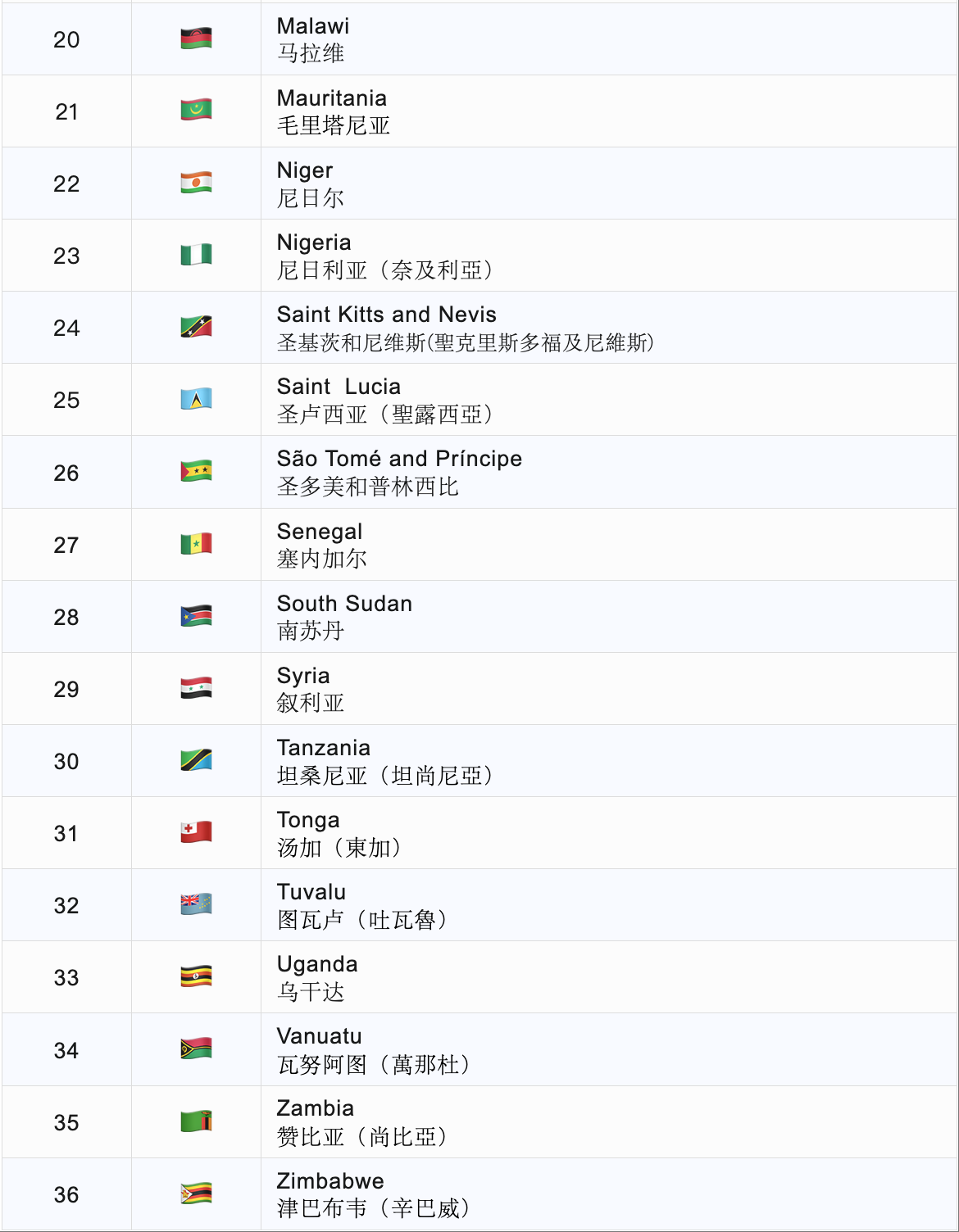▼将要实施的36个禁令国家清单